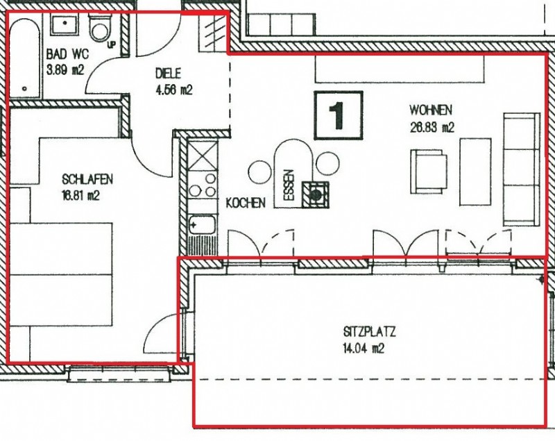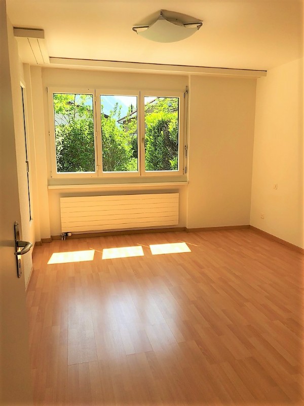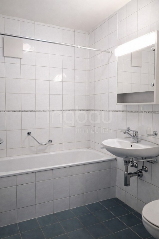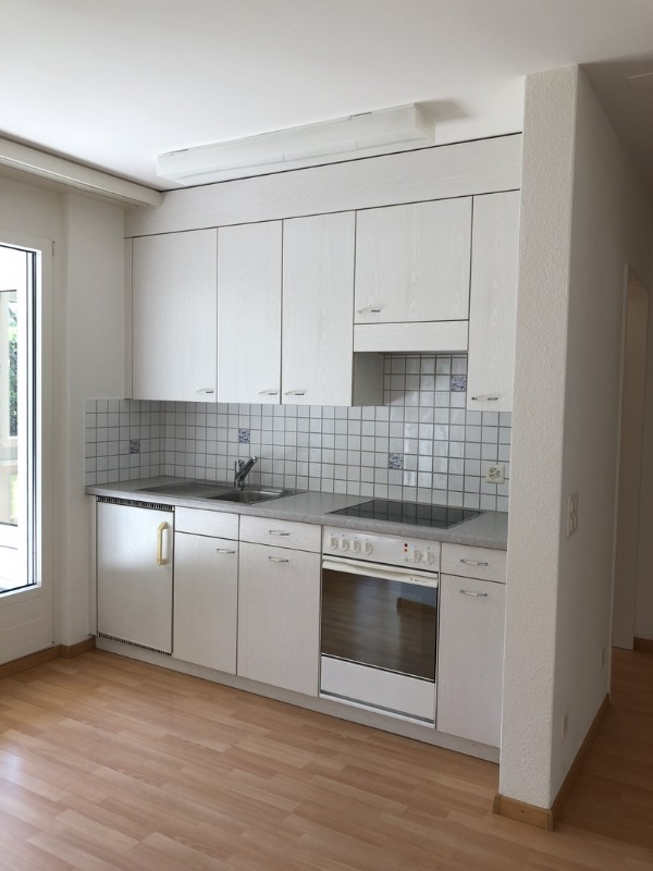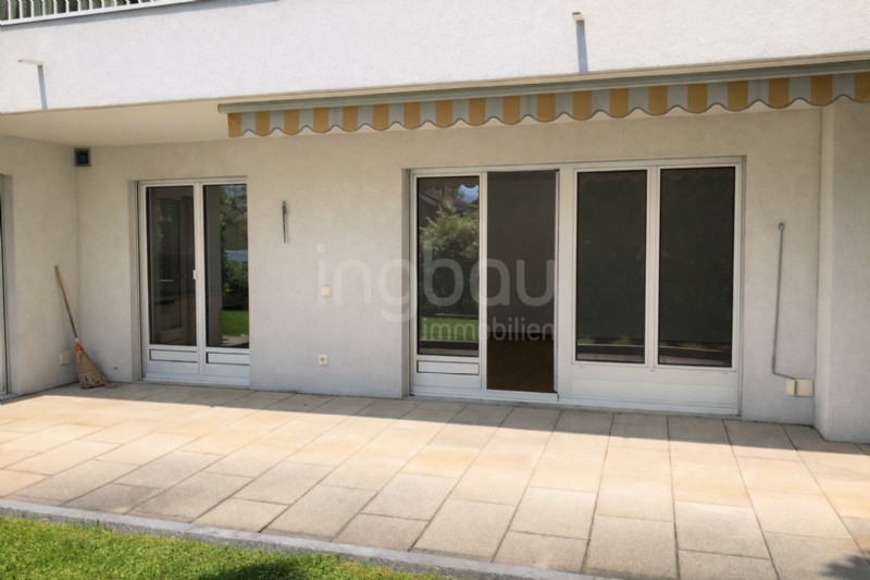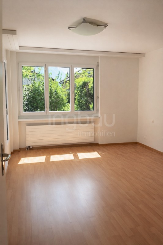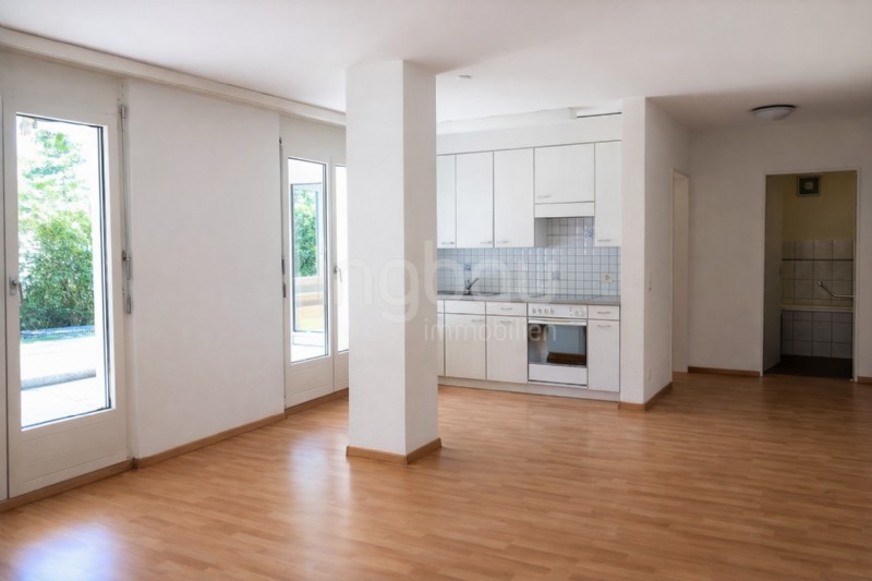 Beim Betreten der Wohnung empfängt Sie ein einladender Eingangsbereich mit praktischer Garderobe. Rechts befindet sich das helle Badezimmer, während das grosszügige Schlafzimmer mit hochwertigem Laminatboden überzeugt. Der offene Wohn- und Essbereich mit angrenzender Küche besticht durch raumhohe Fenster, die für viel Tageslicht und ein angenehmes Wohngefühl sorgen. Vom Wohnbereich aus gelangen Sie auf den überdachten Sitzplatz, der zum Verweilen und Entspannen einlädt.