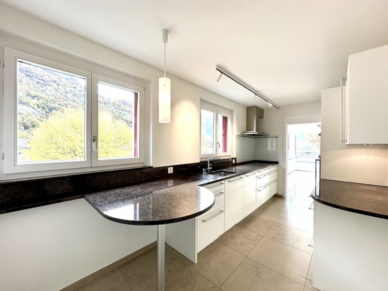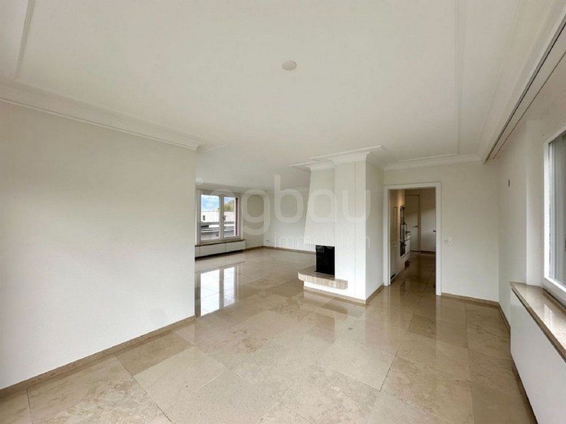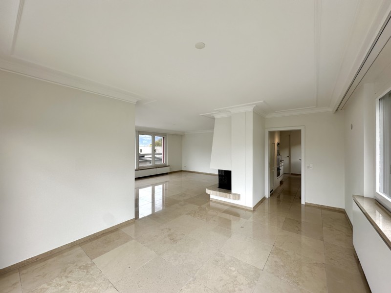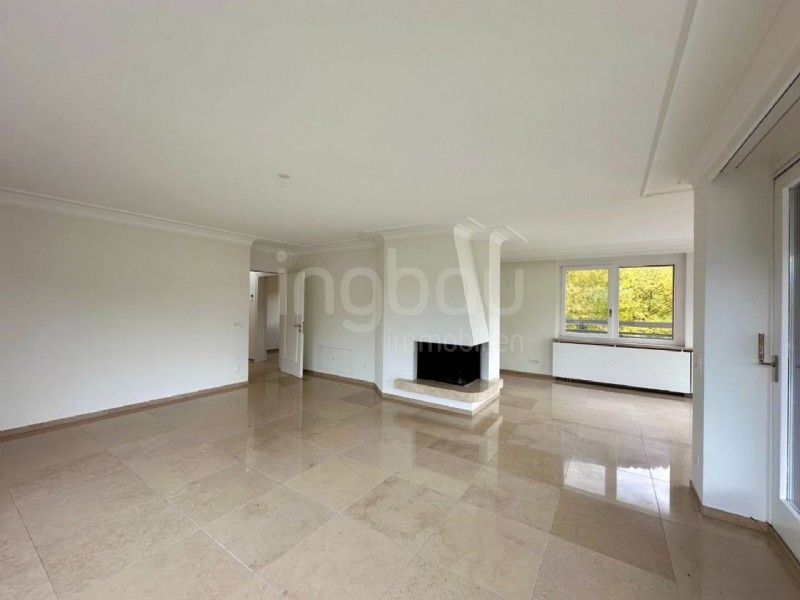 - Einen Lichtdurchfluteten Wohn- und Essbereich nach Süden mit viel Platz dank großzügigem Grundriss und Cheminée, verkleideten Heizungsradiatoren mit Marmor Fensterbänken