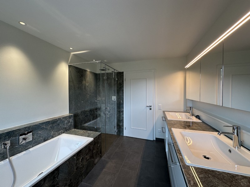 - Master Bad in edlen Stein Abdeckungen, Badewanne, Dusche und Toilette (neu saniert 2022)