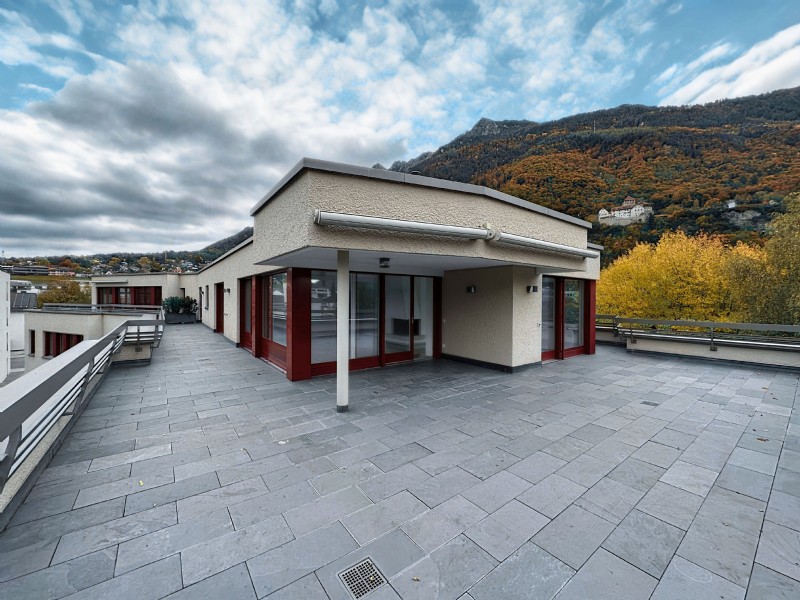 Die exklusive Attika Wohnung erstreckt sich über den Südlichen Teil des Dachgeschosses. Die Großzügige Terrasse (mit mehr m2 wie Wohnfläche) mit ungehindertem Ausblick auf die Alvier Bergkette und das Rheintal sowie auf die Dreischwesternkette mit Schloss Vaduz sind einmalig.