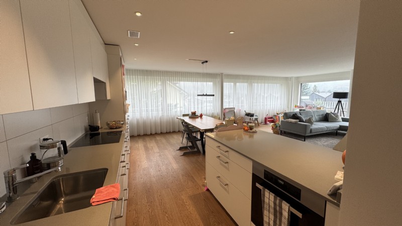 Das moderne Mehrfamilienhaus mit zentraler Lüftungsanlage und überdurchschnittlich hoher Schallschutzisolierung wurde 2018 fertiggestellt. Diese grosszügige 4.5 Zimmerwohnung liegt im 2. Obergeschoss und kann bequem über den Lift erreicht werden.