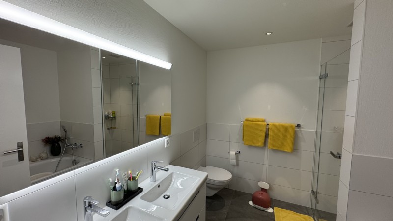 Das zweite Bad verfügt sowohl über eine Dusche als auch eine Badewanne und bietet viel Platz.