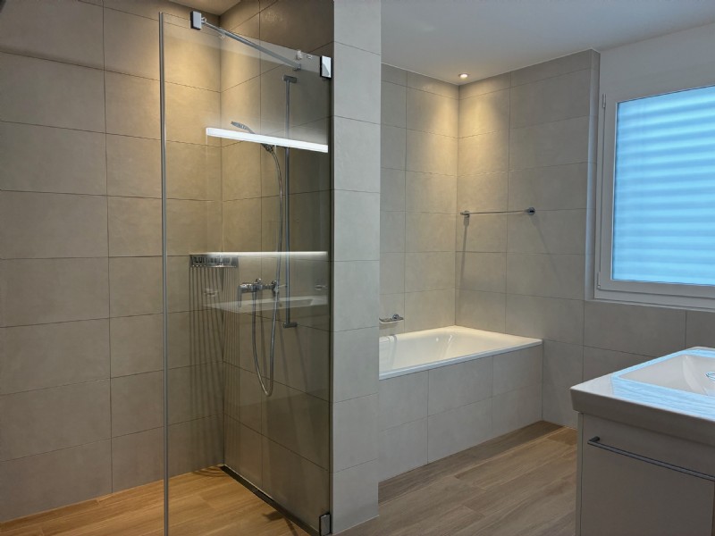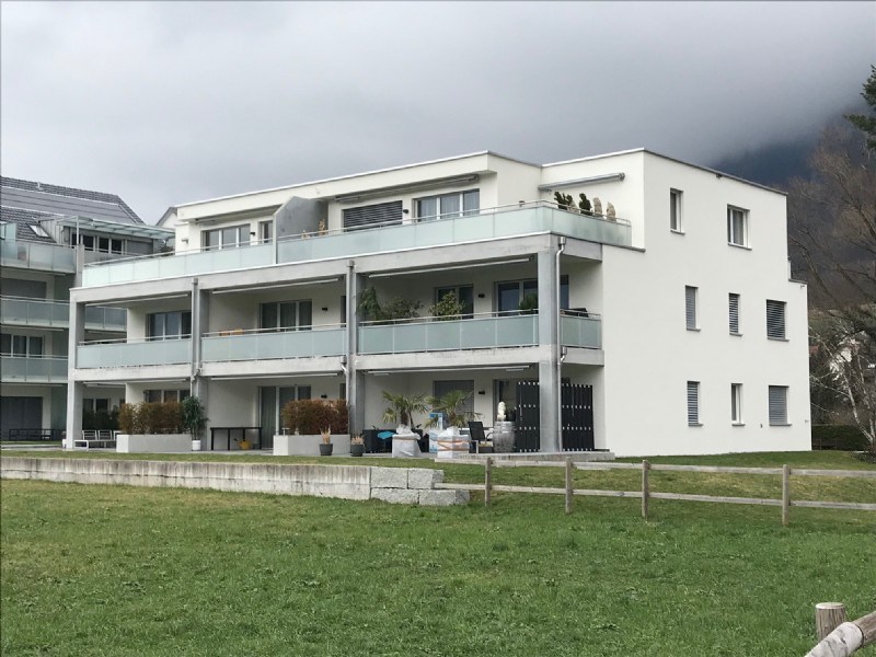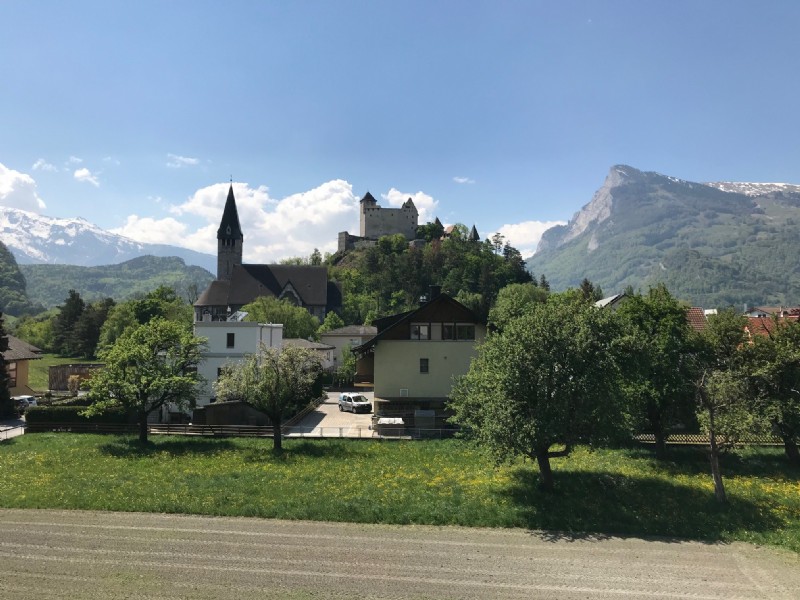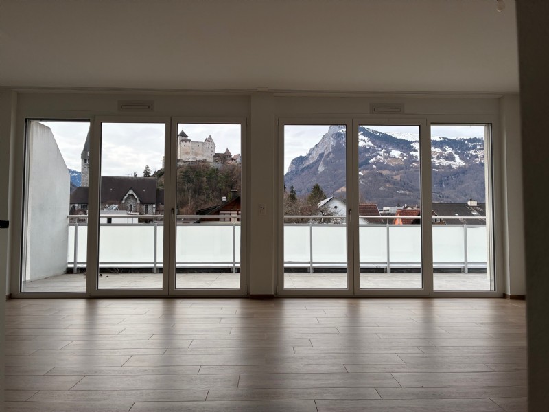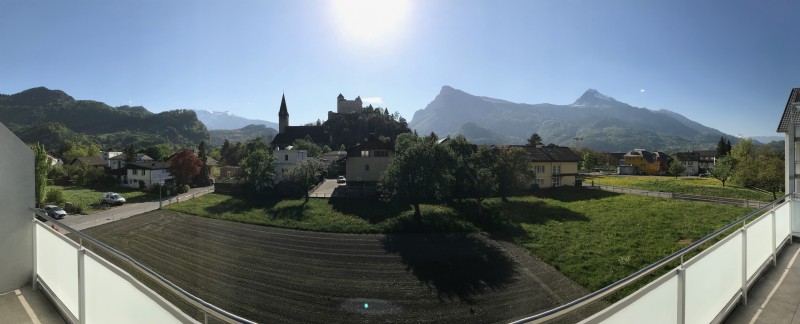 Die grosszügigen Terrassen bzw. Balkone sind alle nach Westen ausgerichtet. Von da aus geniessen Sie den Ausblick auf Burg Gutenberg und die umliegenden Berge.