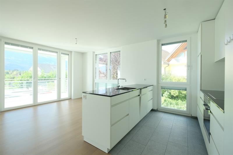 Die moderne Wohnung mit hochwertiger Grundausstattung wartet auf Sie. Im Eingangsbereich steht Ihnen eine Garderobe zur Verfügung. Rechts davon befinden sich die beiden Zimmer. Neben dem separaten Gästebad mit Dusche bietet die Wohnung Ihnen auch ein Badezimmer mit Badewanne, Einzellavabo und WC. Die Waschmaschine und der Tumbler sind im Badezimmer untergebracht aber dank der eleganten Verkleidung kaum sichtbar. Mittelpunkt der Wohnung bildet die moderne Küche mit viel Stauraum, welche zum Wohnbereich hin offen ist. Die Bodenbeläge sind in Granit und Parkett gehalten. Vom Wohnzimmer aus gelangen Sie auf den grosszügigen nach Westen ausgerichteten Balkon.