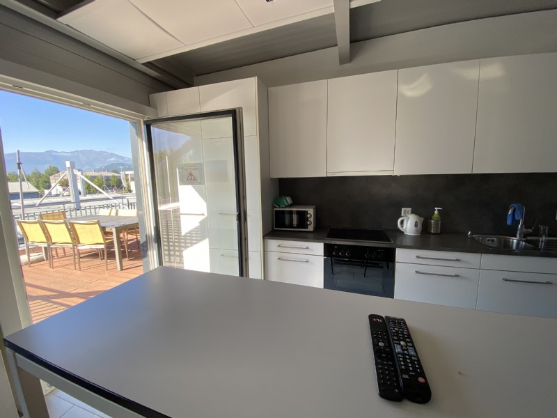 Aufenthaltsraum mit Teeküche und Terrasse gemeinsam