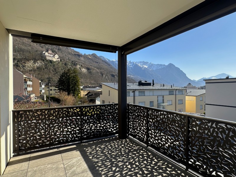 Die Bodenbeläge sind mit Feinsteinzeugplatten in Holzoptik ausgestattet. Die helle Küche mit hochwertigen Küchengeräten (Miele-Geräte, Dunstabzug-Bora System) ist geräumig und lädt zum Kochen ein. Das Badezimmer ist mit einer Badewanne ausgestattet und verfügt zudem über praktische Einbauschränke sowie einen Waschturm. Das Gäste-WC bietet eine zusätzliche Dusche für maximalen Komfort. Die Wohnung verfügt über drei gemütliche Schlafzimmer sowie ein grosszügiges Kellerabteil, das ausreichend Stauraum bietet. Glasfaseranschluss sorgt für schnelles Internet. Der gegen Westen ausgerichtete, überdachte Balkon bietet eine tolle Aussicht auf Schloss Vaduz und die Schweizer Berge.