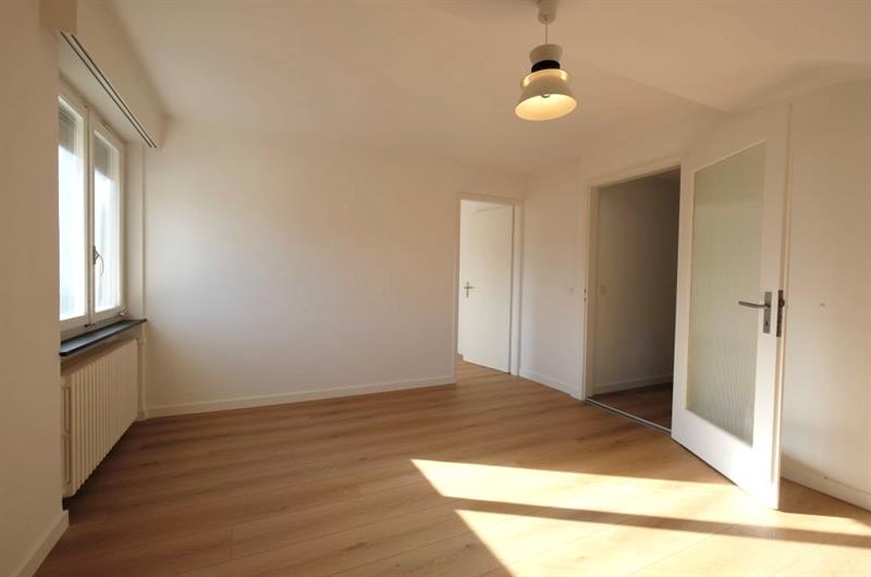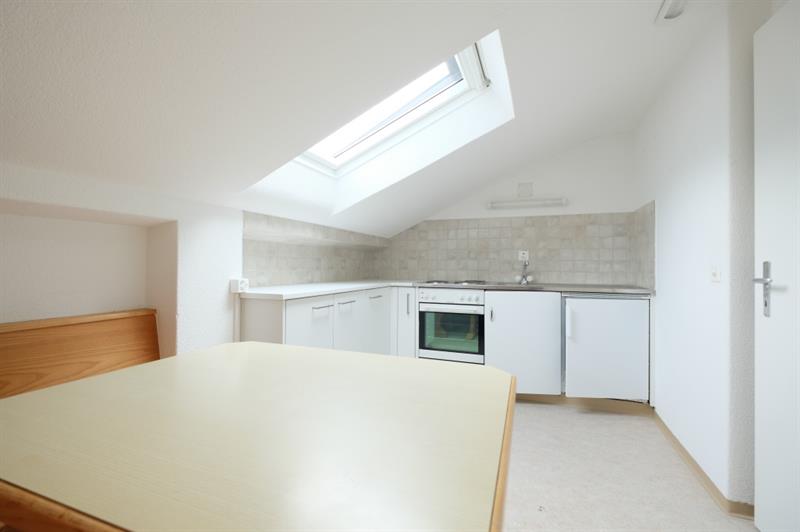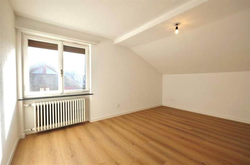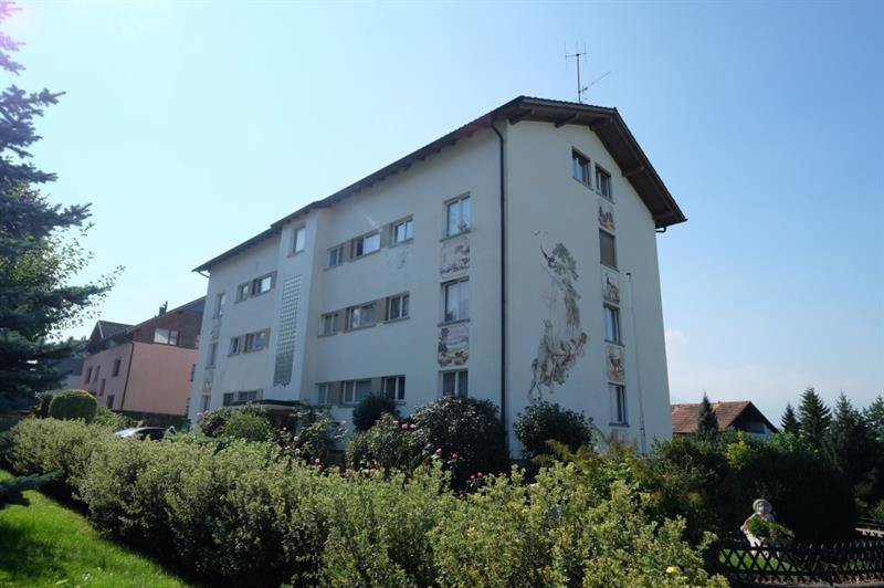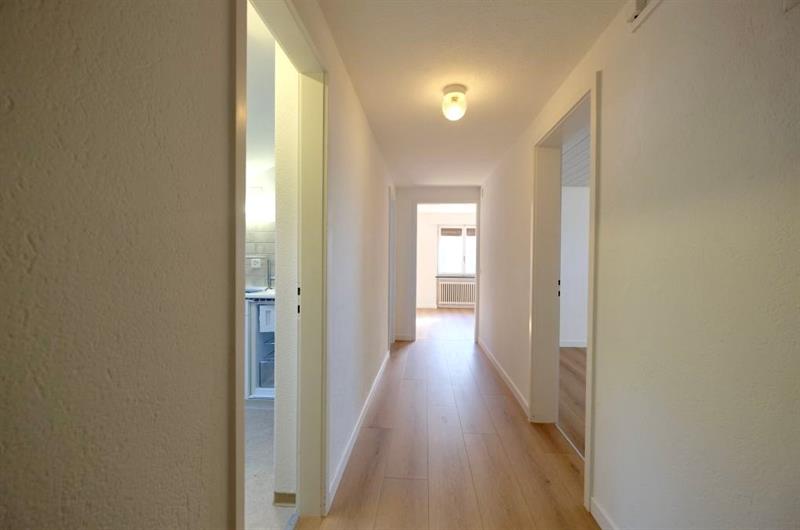 Das Mehrfamilienhaus verfügt über keinen Lift. Links vom Eingangsbereich der Wohnung befindet sich die Küche mit eingebautem Eckbank und Tisch. Die Küchenzeile ist mit etwas Stauraum, einem Backofen und einem kleinen Kühlschrank ausgestattet. Es ist keine Geschirrspülmaschine und kein Dampfabzug vorhanden. Im gegenüberliegenden Wohnzimmer wurde ein schöner Parkettbodenbelag verlegt. Das Badezimmer verfügt nebst Einzellavabo und WC über eine Badewanne. Die beiden Zimmer wurden im südlichen Teil der Wohnung angeordnet und sind mit Teppichbodenbelägen ausgestattet. Es ist kein Balkon vorhanden.