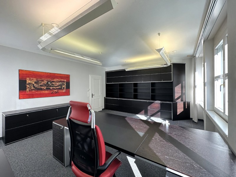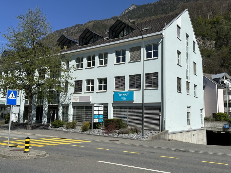 Zum Verkauf steht ein hochwertiges Büro im 1. OG eines modernen Geschäftsgebäudes an der Hauptverkehrsader von Vaduz. Das Gebäude bietet eine durchdachte Raumaufteilung und eine erstklassige Arbeitsumgebung. Die Büroflächen sind mit massgefertigten Möbeln, Teppichböden und integrierter Beleuchtung ausgestattet. Eine elektrische Kardex-Anlage, diverse Kabelkanäle, eine Küche sowie drei WC stehen zur Verfügung. Eine Bodenheizung mit Kühlfunktion bietet ein angenehmes Raumklima. Zusätzlicher Stauraum mit Compactus-Anlage befindet sich im Keller. Ein besonderes Highlight sind die 11x Garagenplätze in der Tiefgarage.