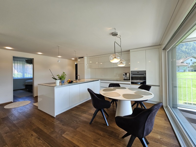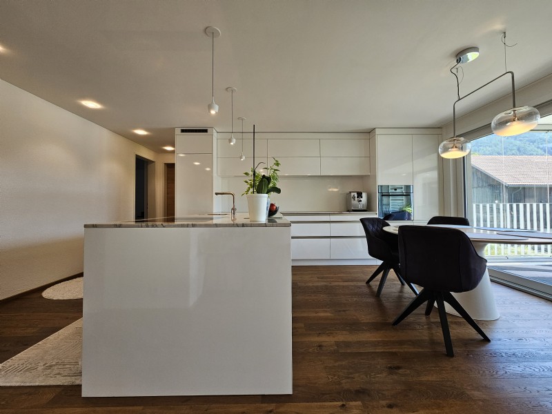 Diese hochwertig ausgebaute 4.5-Zimmer-Wohnung besticht durch ihren sehr guten Grundriss, lichtdurchflutete Räume und ein stimmiges Gesamtpaket, das sofort überzeugt. Besonders ins Auge fällt der grosse Balkon mit Wintergarten, der zu jeder Jahreszeit als Wohlfühlort dient – ob für entspannte Kaffeepausen, Pflanzenfreude oder ruhige Stunden mit Aussicht.