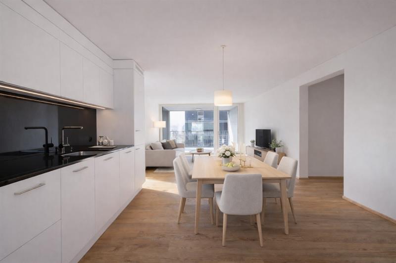Alle Wohnungen überzeugen mit einem hohen Ausbaustandard, modernen Materialien und durchdachten Raumkonzepten. Das Prinzip des Durchwohnens sorgt dafür, dass sämtliche Wohnräume von natürlichem Licht durchflutet werden.