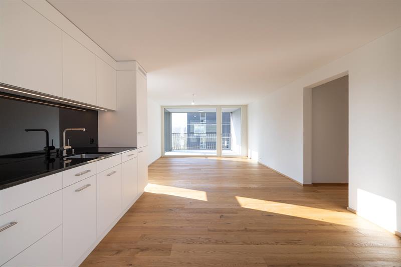 Die Wohnüberbauung Oberfeld Süd wird grundlegend modern und energieeffizient geplant und realisiert. Die Gebäude werden nach MINERGIE-A-Standards zertifiziert, was ein komfortables Raumklima gewährleistet. Die äussere Gestaltung mit Fassadenverkleidung aus Holz und hochwertigen Holz-Metallfenstern bietet nicht nur Ästhetik, sondern auch Funktionalität. Moderne Lüftungssysteme sorgen für frische Luft, während hochwertige Sanitärapparate und topmoderne Einbauküchen Bequemlichkeit bieten. Die hochwertigen Bodenbeläge, wie rustikales Eichenparkett in den Wohnbereichen und Fliesen in den Nasszellen, verleihen den Räumen eine angenehme Atmosphäre.