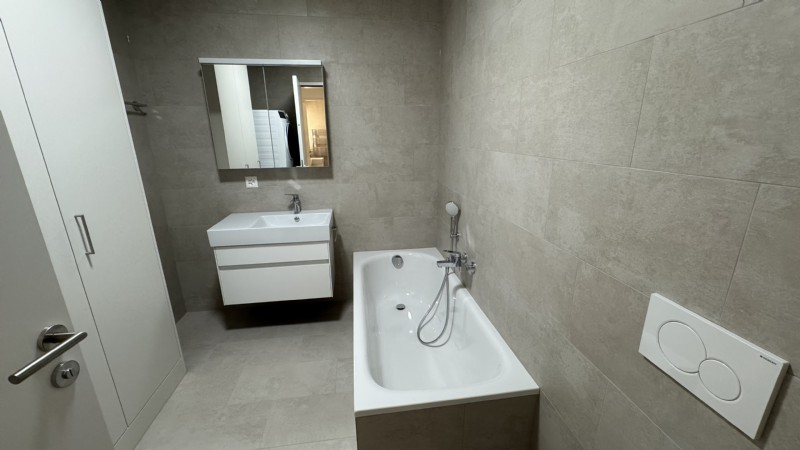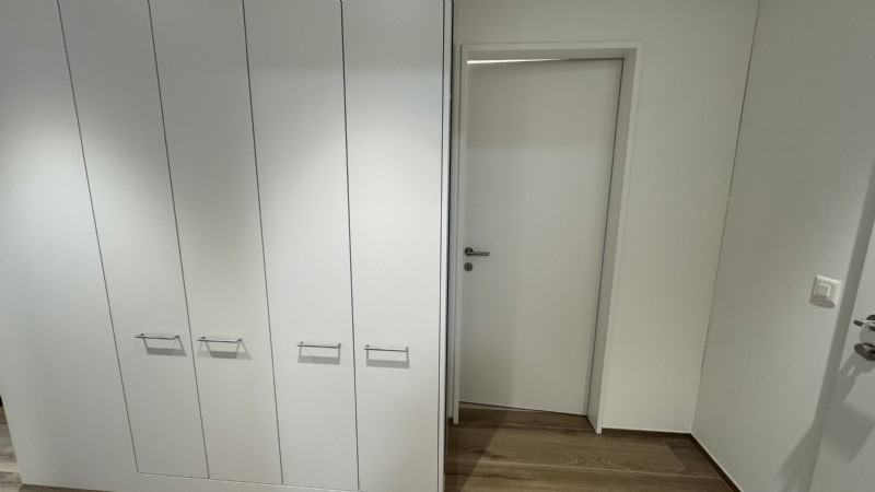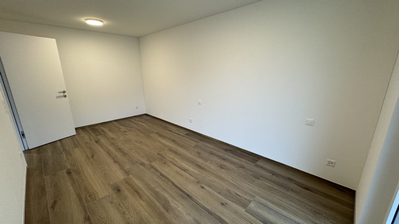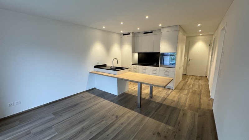 In der gesamten Wohnung wurde ein hochwertiger Plattenboden in Holzoptik verlegt, der für ein harmonisches Wohngefühl sorgt. Deckenspots schaffen eine angenehme Beleuchtung, während die grosszügige Einbaugarderobe zusätzlichen Komfort und Ordnung bietet.