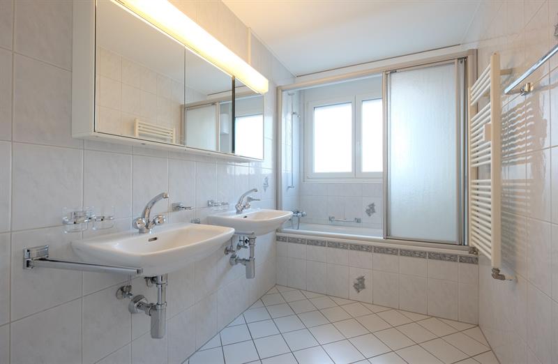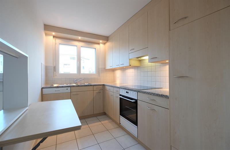 Der Eingangsbereich bietet Ihnen durch Einbauschränke und -garderobe reichlich Stauraum. Im hellen Wohnbereich sowie in den beiden Zimmern wurden Laminatbodenbeläge, in der Küche, im Badezimmer und im Gäste-WC Plattenbodenbeläge verlegt. Die separate Küche ist mit einer Natursteinabdeckung, einer Geschirrspülmaschine, einem neuen Herd- und Backofen mit Ceranfeld und einer Durchreiche zum Essbereich ausgestattet. Das weiss/grau gehaltene Badezimmer ist mit einer Badewanne, einem Spiegelschrank und zwei Lavabos ausgestattet. In der Wohnung befindet sich ein Gäste-WC. Ausserdem wurde die Liegenschaft und die Wohnungen dem Glasfaser Netz angeschlossen.Zudem sorgt der Anschluss an das Fernwärmenetz für eine umweltfreundliche und effiziente Heizlösung. Auf dem nach Westen ausgerichteten Balkon erreicht Sie die Nachmittag- und Abendsonne und lädt zum Verweilen ein.
