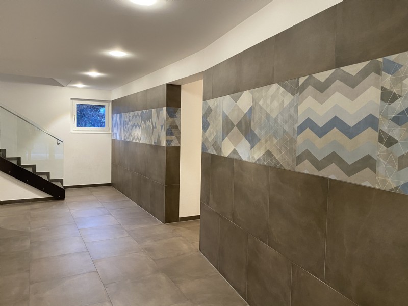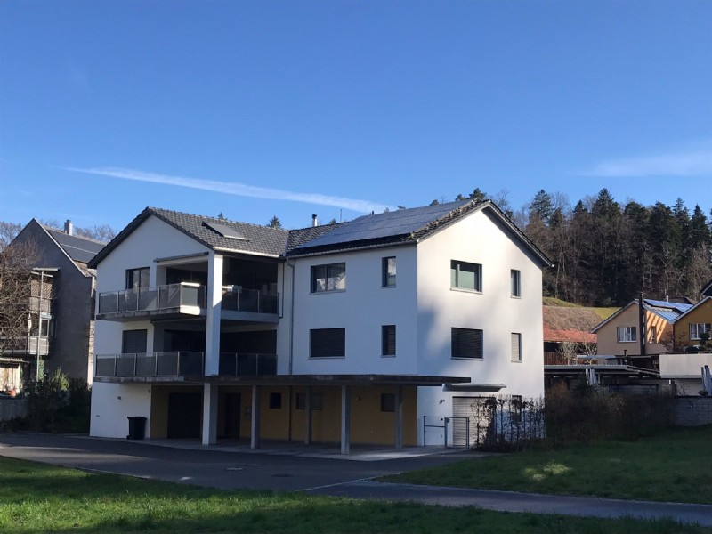 Im Erdgeschoss sind ca. 20 m² Nebenflächen wie Büro mit Bad, Kellerraum und ein Aussenabstellraum (zB. für Velos, Autoreifen) vorhanden. Ein Carportparkplatz sowie ein offener Parkplatz sind der Wohnung zugeteilt. Ein gemeinsamer Sitzplatz ist links vom Gebäude vorhanden.