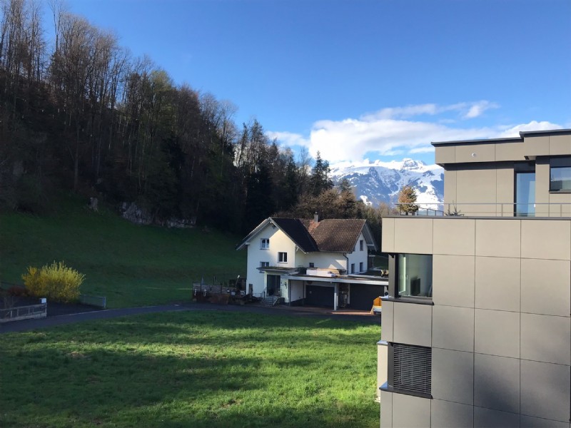 An ruhiger und doch zentraler Lage in Gamprin liegt diese Wohnung mit Blick ins Grüne und auf die Bergwelt. Sie befindet sich in einem Mehrfamilienhaus mit insgesamt nur drei Stockwerkeinheiten. Eine Bushaltestelle ist in unmittelbarer Nähe des Hauses. Kindergarten und Schulen sind in wenigen Gehminuten erreichbar.
