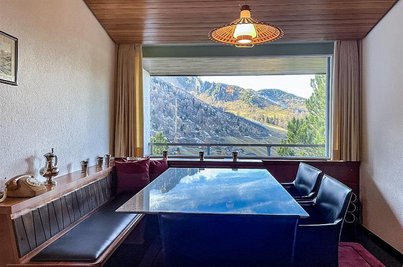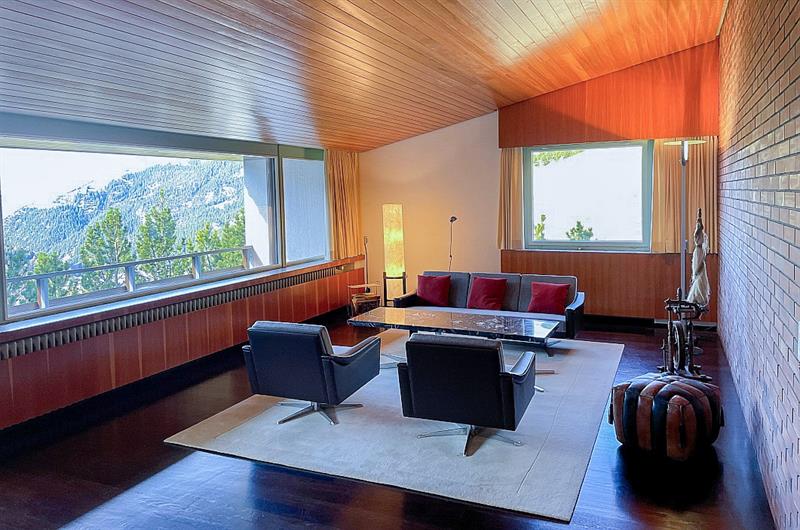 Das Ferienhaus wurde 1963 als modernes Architektenhaus realisiert und unterscheidet sich vom klassischen Chaletstil. Die Architektur ist klar, zeitlos und hochwertig. Der Eingangsbereich führt in einen grosszügigen Wohn- und Essraum mit stimmungsvoller Aussicht und direktem Balkonzugang. Auf derselben Ebene liegen die Küche und eine Nasszelle. Im Untergeschoss befinden sich drei Zimmer, eine Nasszelle sowie Kellerbereiche, ergänzt durch eine Terrasse in der Hanglage. Insgesamt präsentiert sich das Haus gepflegt und in gutem Zustand. Im Angebot enthalten zudem die Designermöbel.