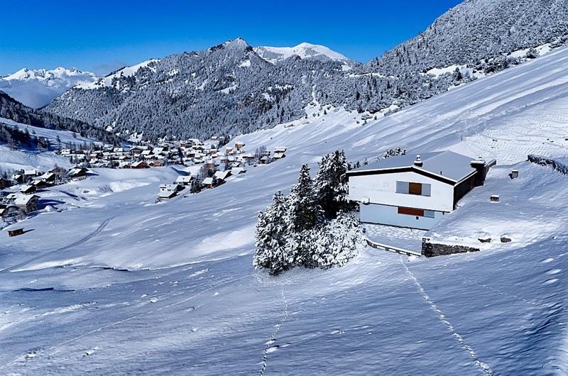 Das Grundstück liegt in der roten Gefahrenzone direkt neben der Skipiste. Oberhalb des Hauses sorgen Lawinenverbauungen für zusätzliche Sicherheit und aufgrund der erhöhten Lage hat bislang keine vom Augstenberg kommende Lawine das Gebäude erreicht. Die Bauweise ist aussergewöhnlich robust, selbst das Dach besteht aus massivem Stahlbeton. Durch die Zonierung bleibt die Umgebung langfristig ruhig, naturbelassen und frei von grösseren baulichen Veränderungen. In Verbindung mit der aussergewöhnlichen Lage über dem Tal ergibt sich eine einmalige Gelegenheit.