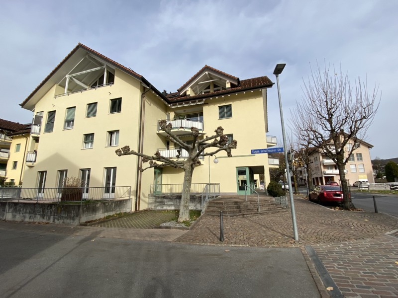 Entlang der St. Luzistrasse sowie seitlich des Gebäudes in der Eugen-Schafhauser-Strasse stehen zahlreiche Aussenparkplätze zur Verfügung, was eine komfortable Erreichbarkeit für Kundschaft und Mitarbeitende garantiert.