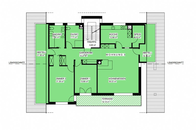 - Grosszügige Abstellflächen mit insgesamt ca. 70 m²