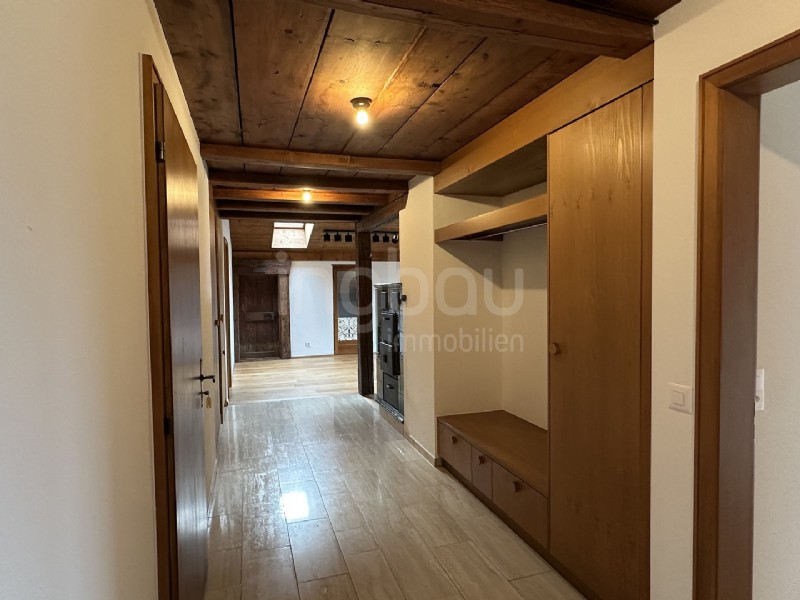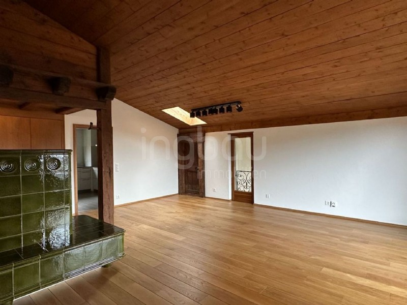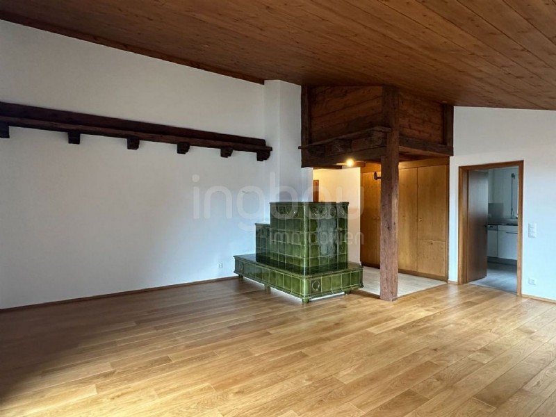 Ein traditioneller Ofen mit integrierter Ofenbank sorgt für behagliche Wärme und lädt zum Verweilen ein. Zusätzlich verfügt die Wohnung über einen begehbaren Kleiderschrank, der komfortablen Stauraum und Ordnung ermöglicht. Grosszügige Abstellflächen bieten aussergewöhnlich viel Platz und eignen sich ideal für diverse Nutzungsmöglichkeiten.