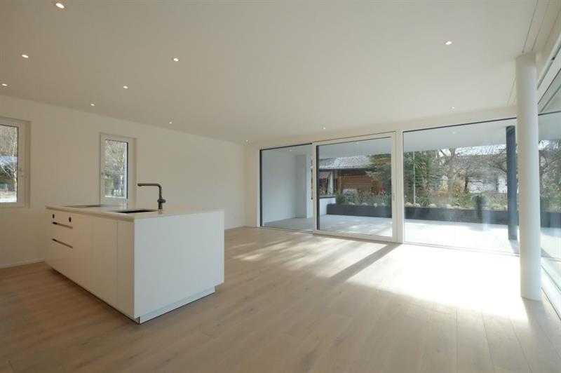 Der offene Wohn- und Essbereich ist lichtdurchflutet und bietet direkten Zugang zur grossen Terrasse – ein besonderes Highlight für alle, die Wert auf einen erweiterten Wohnraum im Freien legen.