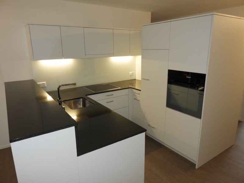- Offene, moderne Küche mit Glaskeramikkochfeld, Backofen und Geschirrspüler