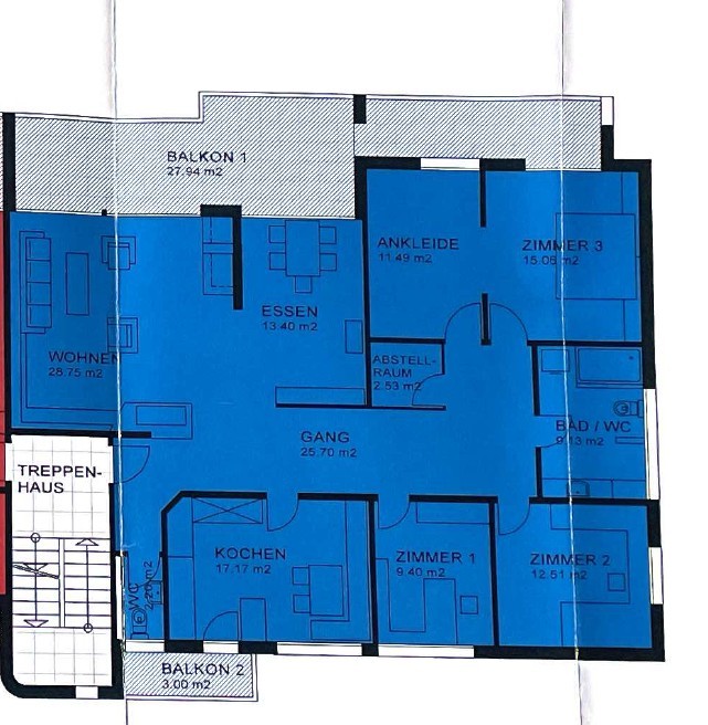 Ein zusätzlicher kleiner Balkon mit 3 m² steht ausserdem zur Verfügung.