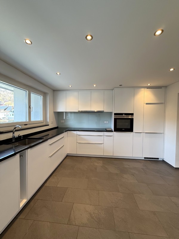 - Grosse, helle Küche mit angrenzendem offenen Essbereich und Zugang zum Balkon