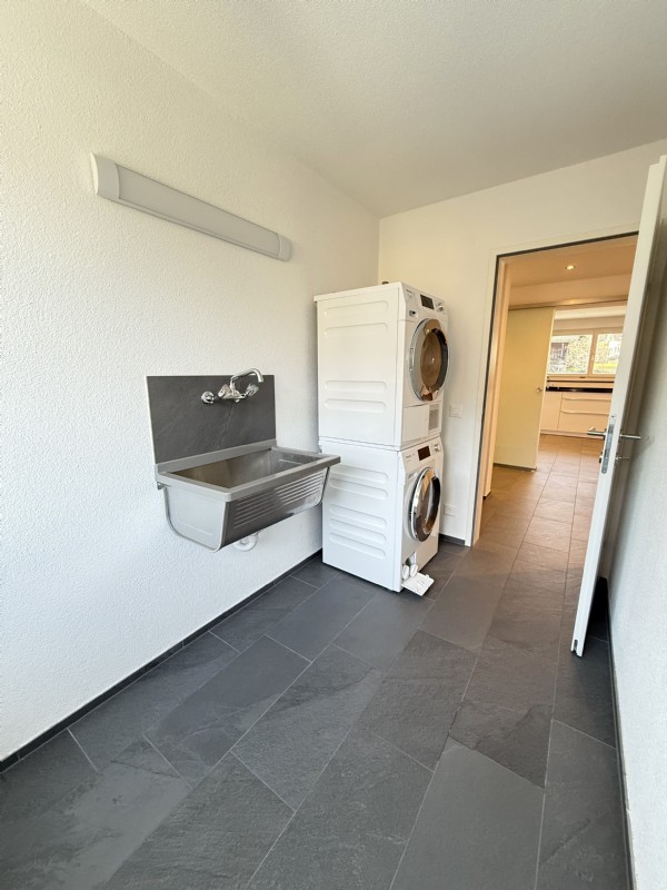 - Separater Wirtschaftsraum mit Waschmaschine/Trockner und Lavabo in der Wohnung