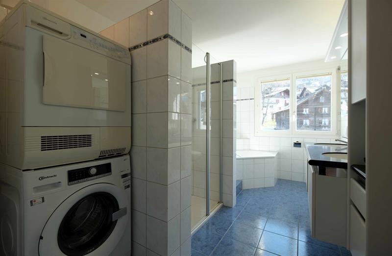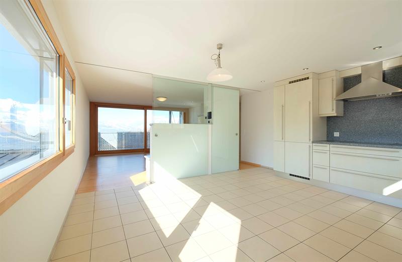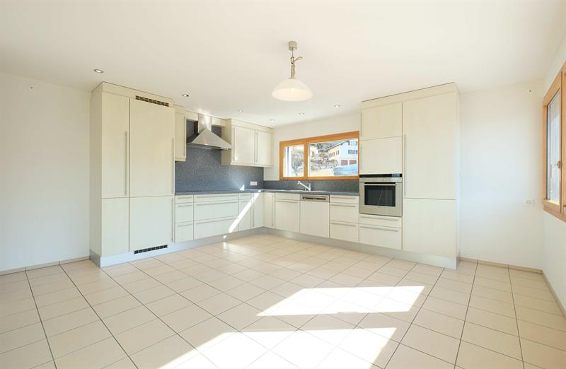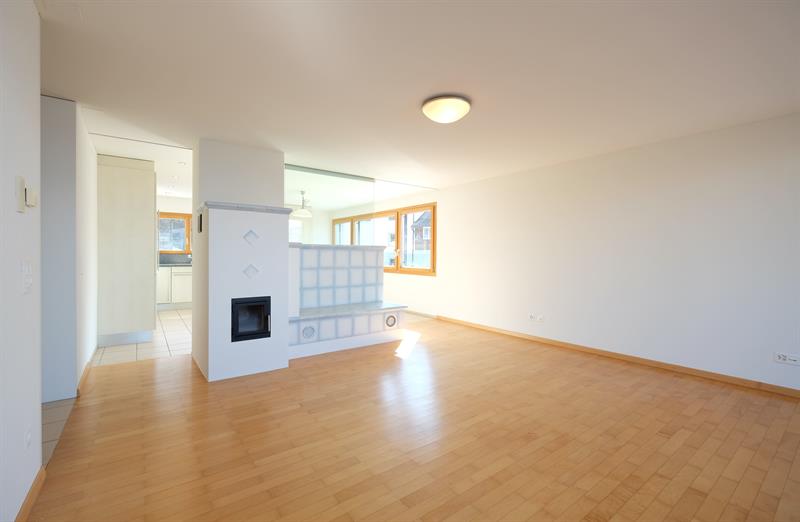 Mittels Personenlift gelangen Sie direkt ins 2. Obergeschoss, wo sich diese 4.5-Zimmerwohnung befindet. Der Eingangsbereich begrüsst Sie mit einer Einbaugarderobe auf der rechten Seite sowie einem kleinen Gäste-WC auf der linken. Das angrenzende Tageslicht-Badezimmer ist mit einer eigenen Waschmaschine und einem Tumbler, einer Dusche, einer Eckbadewanne, einem WC und einem Doppellavabo ausgestattet. Insgesamt verfügt die Wohnung über ein Elternschlafzimmer und zwei Kinderschlafzimmer, welche auch als Büro oder Gästezimmer genutzt werden können. Der Mittelpunkt bildet das Wohn- und Esszimmer mit der halboffenen Küche. Letztere bietet Ihnen Platz für einen Esstisch und lässt sich durch eine Schiebetüre aus Glas vom übrigen Raum abtrennen. Der Kachelofen dient als Unterstützung zur Ölheizung und verleiht dem Raum zusätzlich ein gemütliches Flair. Vom Balkon aus können Sie nicht nur die herrliche Aussicht, sondern auch die langen Sommerabende geniessen.