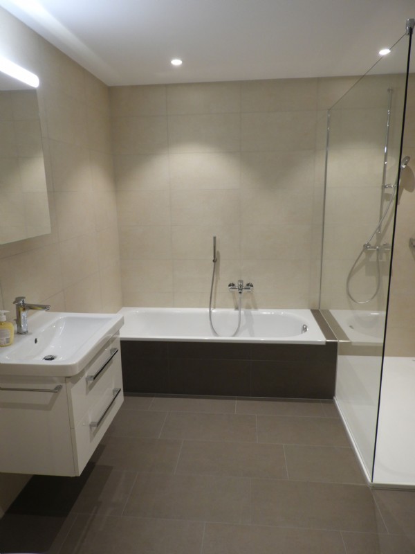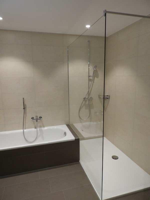 - Badezimmer mit Dusche, Badewanne sowie eigener Waschmaschine/Trockner