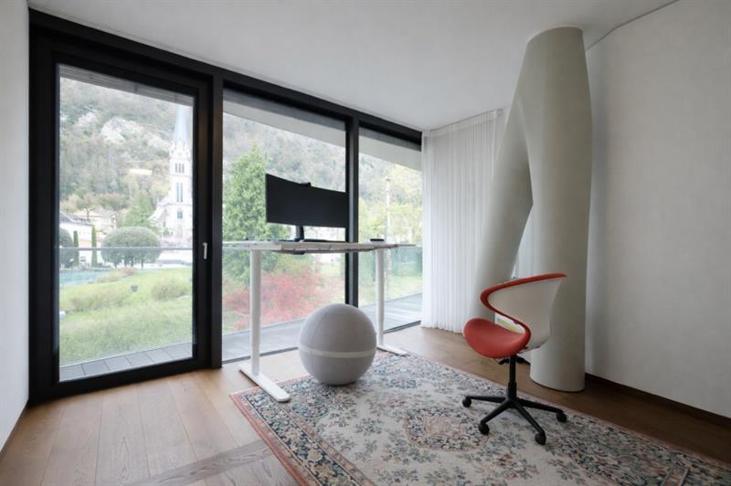 Mitten im Zentrum von Vaduz liegt in absolut ruhiger Lage das Marxer-Haus. Das bauliche Bijou erstreckt sich wie ein luxuriöser Ozeanliner entlang des kleinen Baches Giessen. Schon auf den ersten Blick zeugt das Marxer-Haus von visionärem Geist. Der Blick führt über eine schöne Gartenanlage hinüber zur Kathedrale und Schloss Vaduz und hinauf auf die eindrückliche Kulisse des Drei- Schwestern-Massivs. Insgesamt besteht das Marxer-Haus aus zwölf Wohnungen unterschiedlicher Grösse.
