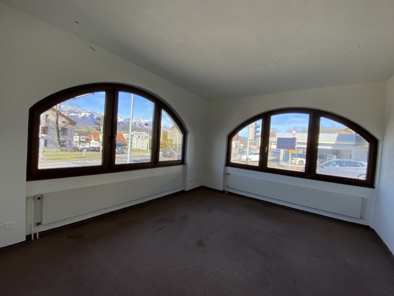 Im ehemaligen Hotel Engel in Nendeln wird eine Büro- oder Geschäftsfläche im Erdgeschoss mit separaten Eingang vermietet. Die Räumlichkeiten bieten viele Möglichkeiten der Nutzung und sind derzeit in vier Räume sowie einem Vorraum eingeteilt. Zwei Räume sind mit einladenden Fensterfronten zur Churer Strasse hin gelegen. Die Zwischenwände in dieser Mieteinheit können je nach Bedarf entfernt werden.