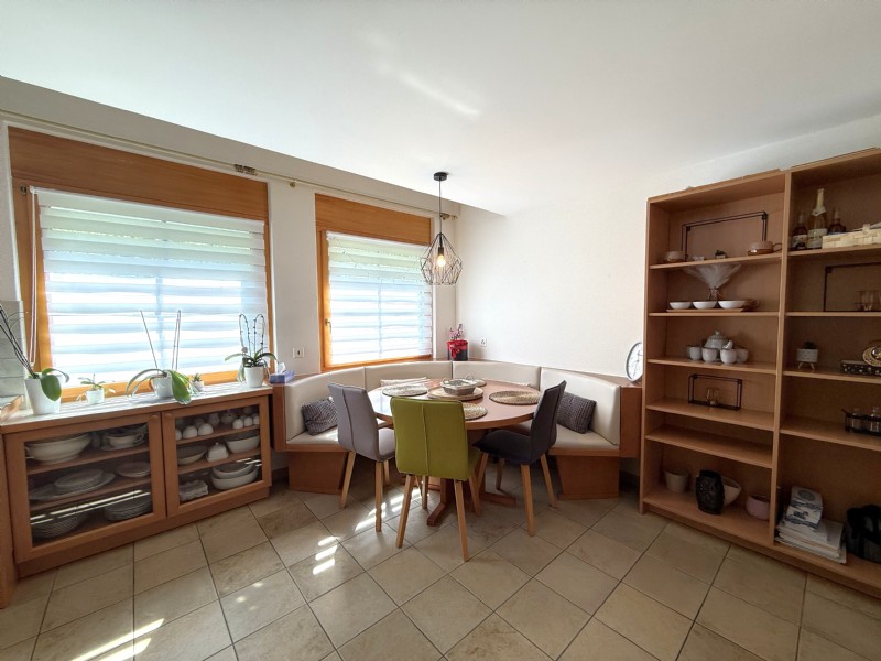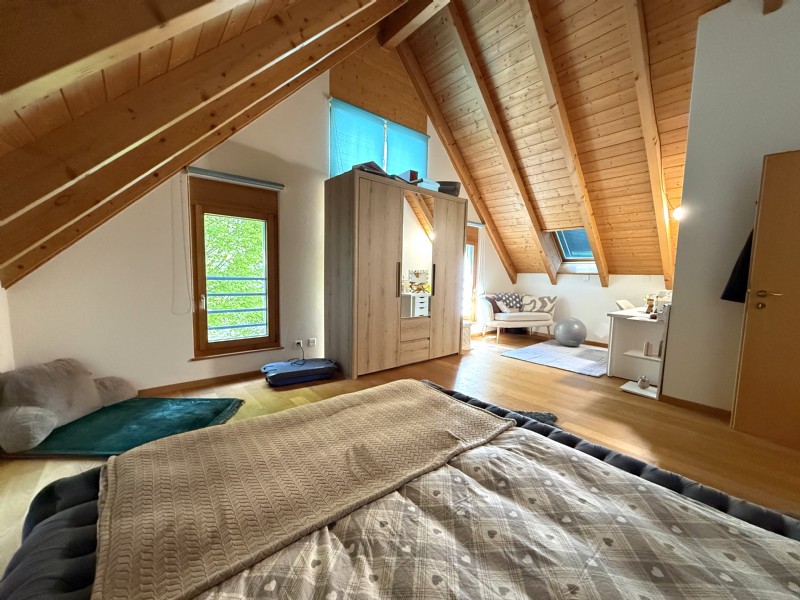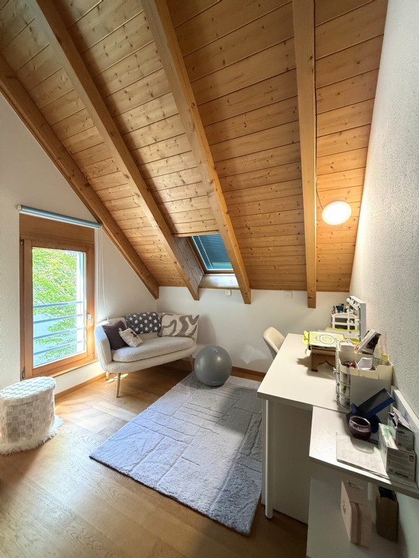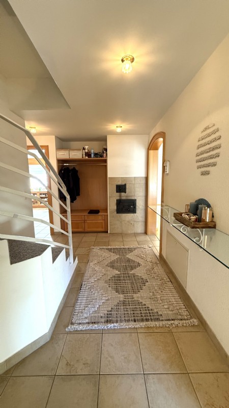 Diese aussergewöhnlich grosszügige 4.5 Zimmer-Wohnung überzeugt mit ihrer erhöhten, ruhigen und sonnigen Lage sowie einem durchdachten Grundriss über zwei Etagen. Der einladende Wohnbereich mit stilvollem Kachelofen und direktem Zugang zu den sonnigen Terrassen bildet das Herzstück der Wohnung und lädt zum Entspannen und Geniessen ein.