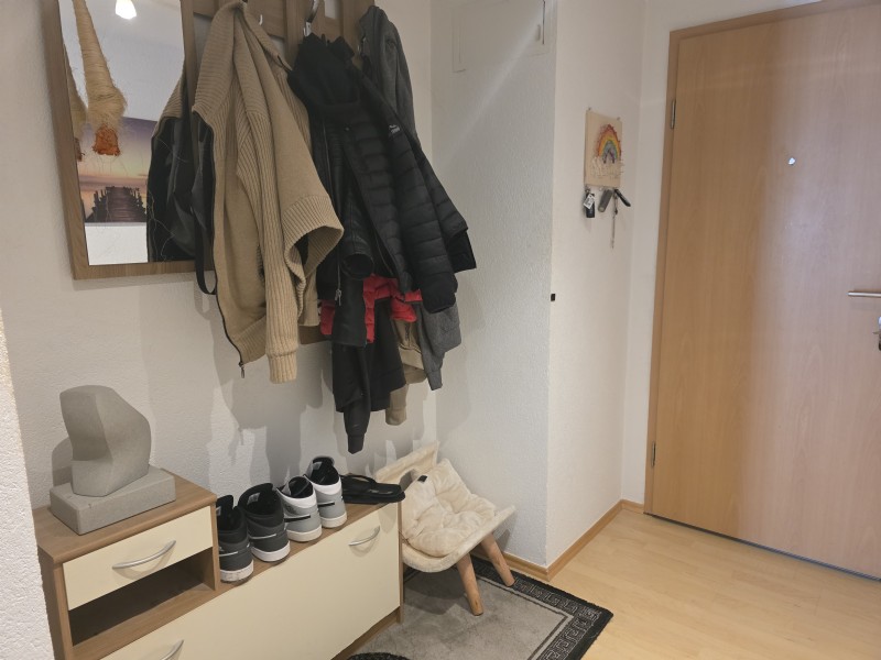Die Wohnung befindet sich im 1.Obergeschoss und ist neuwertig ausgebaut. Das Raumprogramm ist wie folgt: Eingangsbereich, Kinderzimmer, offene Küche mit Essen/Wohnen, Bad mit Badewanne und Dusche, Elternschlafzimmer sowie ein Balkon (nach Süden ausgerichtet). Im pauschalen Mietpreis ist ein Kellerabteil enthalten.