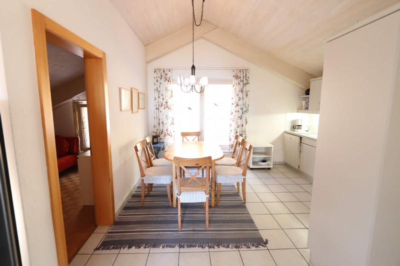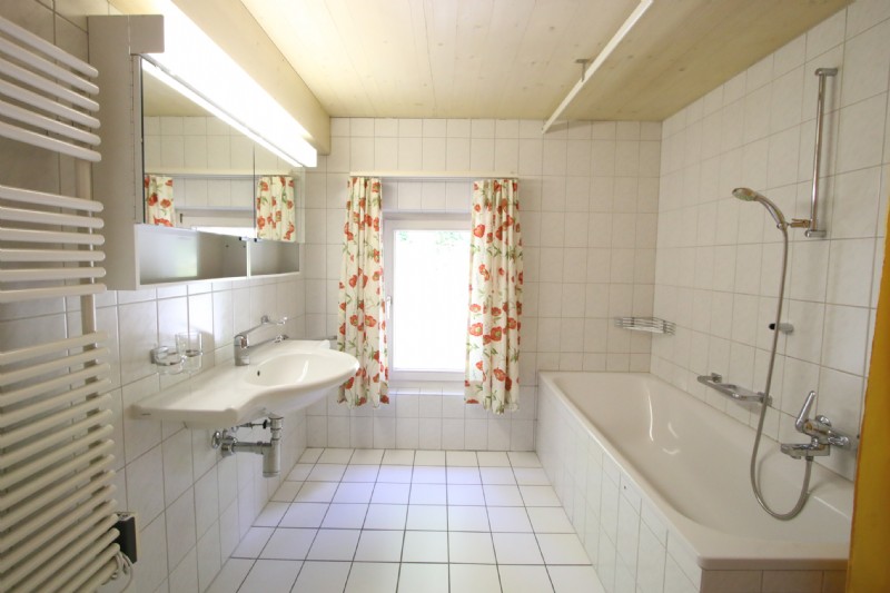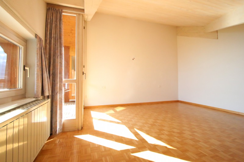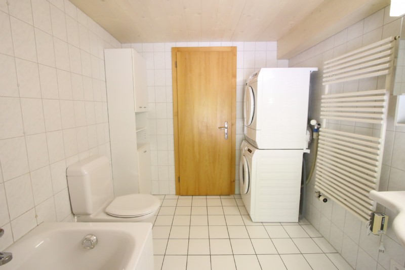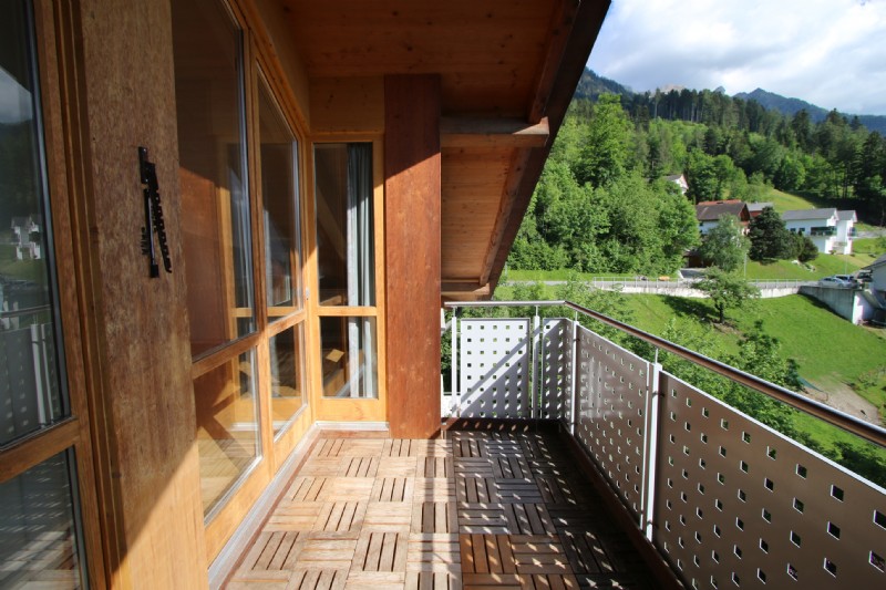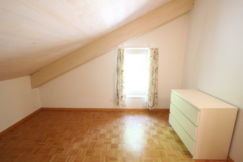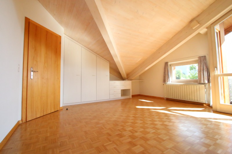 Diese charmante und sehr ruhige 3½ Zimmer-Dachwohnung liegt vom Hauseingang aus im 1. Obergeschoss des in den Hang eingebetteten Mehrfamilienhauses. Vom Wohnzimmer, Schlafzimmer sowie dem Balkon aus können Sie die herrliche Aussicht ins Tal und in die Berge geniessen. Dachschrägen und ein Cheminéeofen verleihen der Wohnung einen individuellen Charakter mit viel Charme zum Entspannen und Wohlfühlen. Die grosszügige Küche lädt ein zum gemeinsamen Kochen. Die Wohnung verfügt über eine eigene Waschmaschine und Trockner. Direkt unter der Wohnung und neben dem Hauseingang befindet sich die zur Wohnung gehörige Einzelgarage, so dass Sie trockenen Fusses aus der Garage in die Wohnung gelangen können. Die Einzelgarage und ein Aussenparkplatz sind im Mietzins inbegriffen. Durch die grosszügigen Masse der Einzelgarage (ca. 20 m2) ist diese als Garage und Abstellraum nutzbar.